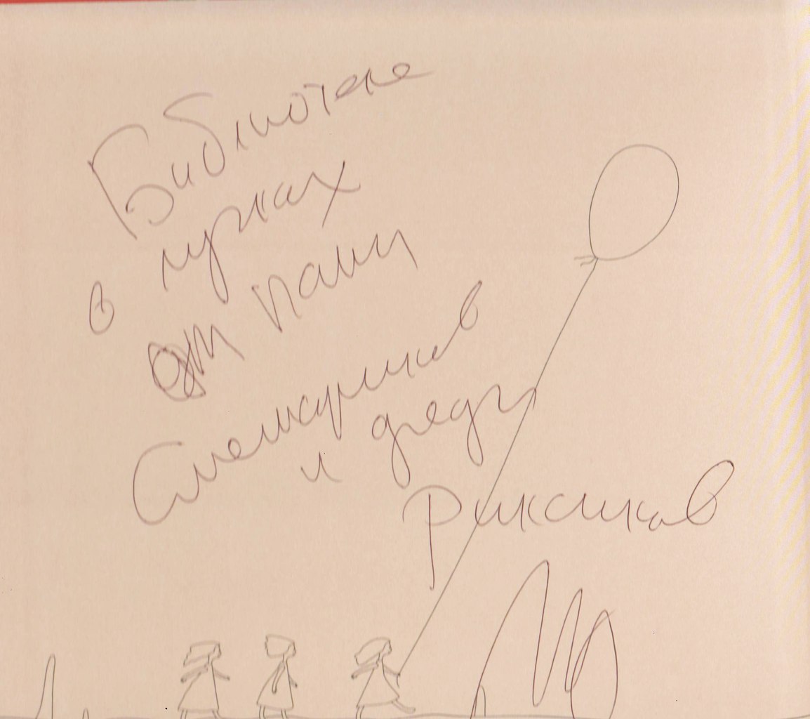 А вот автограф писателя! Эта книжку вы можете взять прочитать в Библиотеке в Лучках: