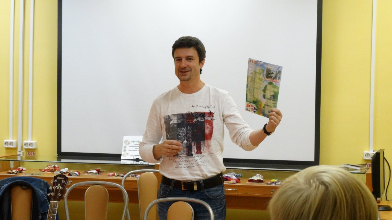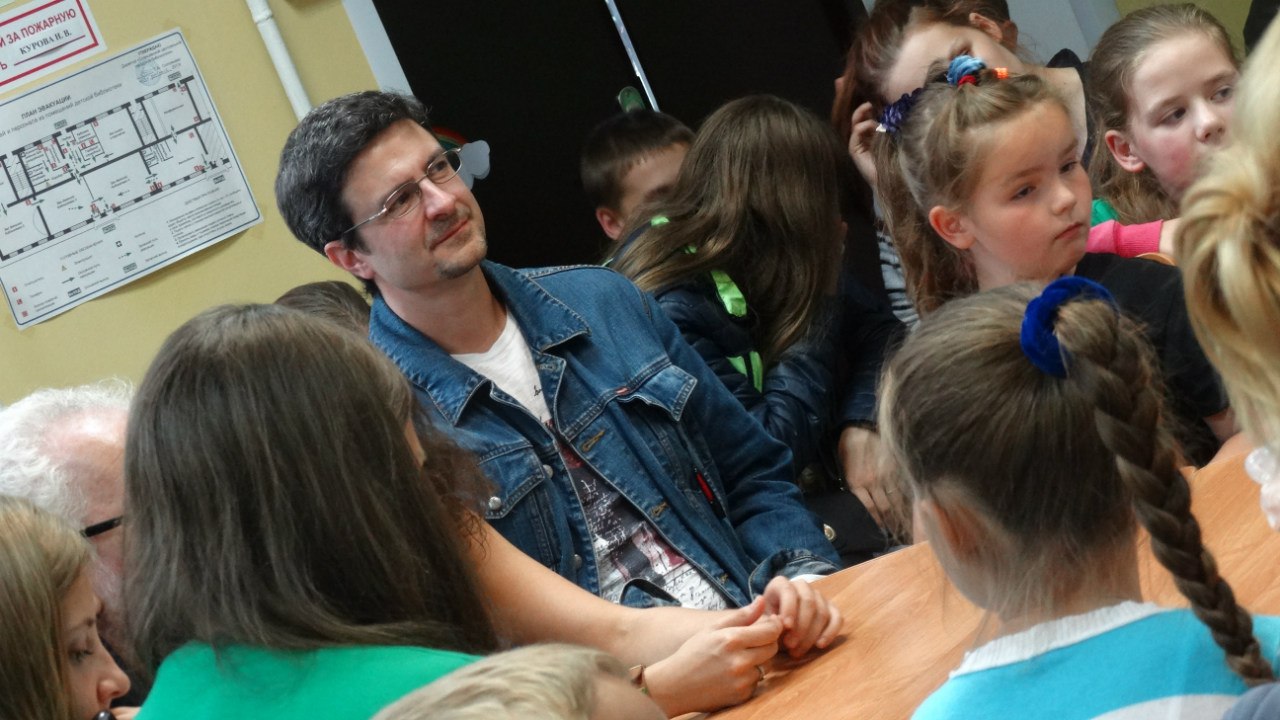 На Попутном книжном ветре к нам впервые прилетел Константин Арбенин! Фейерверк чувств! Фейерверк эмоций! Он сразу завладел аудиторией: читал, пел под гитару, рассказывал о себе и своем творчестве. Писатель, музыкант, актер Константин Арбенин стал очень долгожданным гостем для Сланцевских ребят. Константин поделился историей свой жизни, историей творчества. Оказывается, несмотря на большой музыкальный опыт, Константин в первую очередь считает себя писателем, нежели музыкантом. Больше всего ему нравится писать сказки для детей и взрослых.