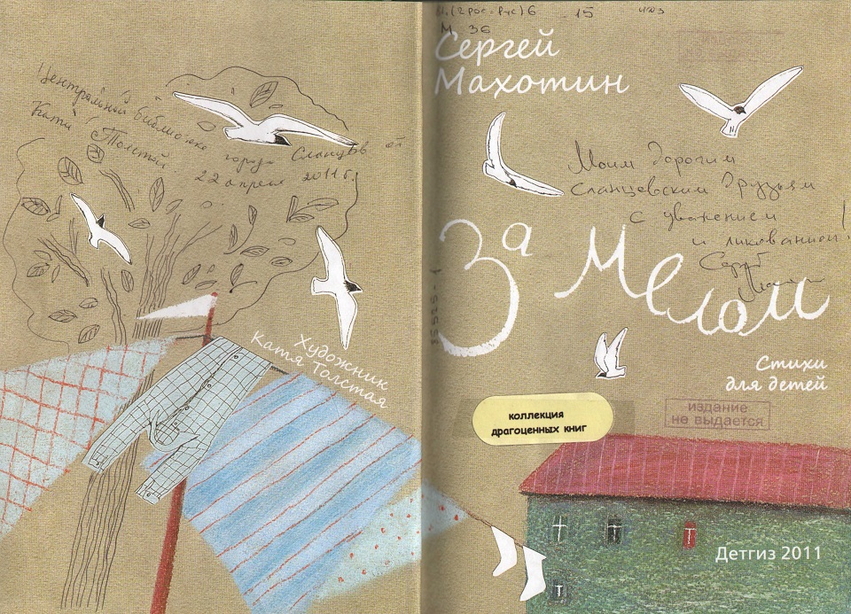 Поэтому книга «За мелом» в нашей коллекции представлена с автографами соавторов – поэта Сергея Махотина и художника Кати Толстой.