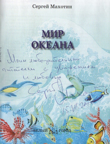 «Моим любознательным читателям с уважением и любовью», Сергей Махотин, 15 июня 2012 года.