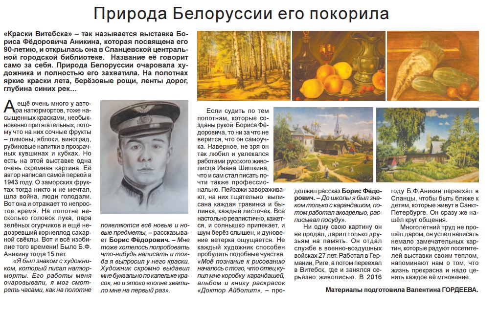 Быстро влился в культурную жизнь нашего города, вступив в любительское объединение мастеров Сланцевского района «ЛиКо».