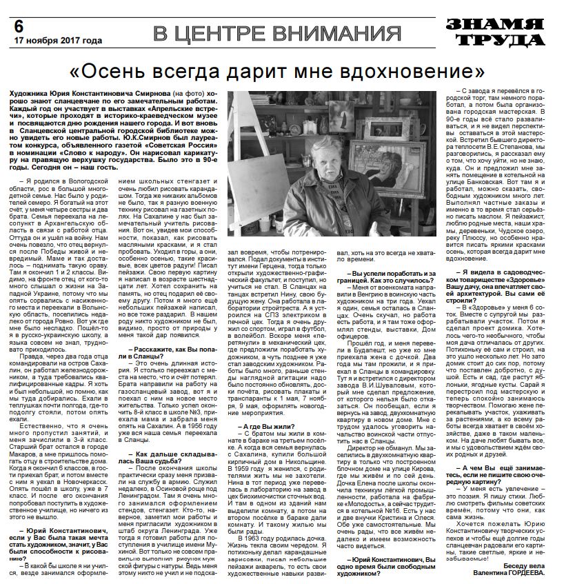 В 2012 году в Санкт-Петербурге был издан сборник стихов Ю.К. Смирнова «И это мне кажется чудом».